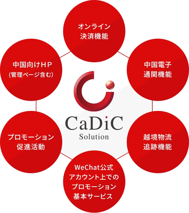 CaDiC Solutionは、「中国マーケットに進出したいが、初期投資や現地出店リスクで進出しづらい。」「現地に進出せずECビジネスで展開しようとしても決済や物流等の問題で中々うまくいかない。」そのようなことでお困りの方に対してご提供させて頂いています。